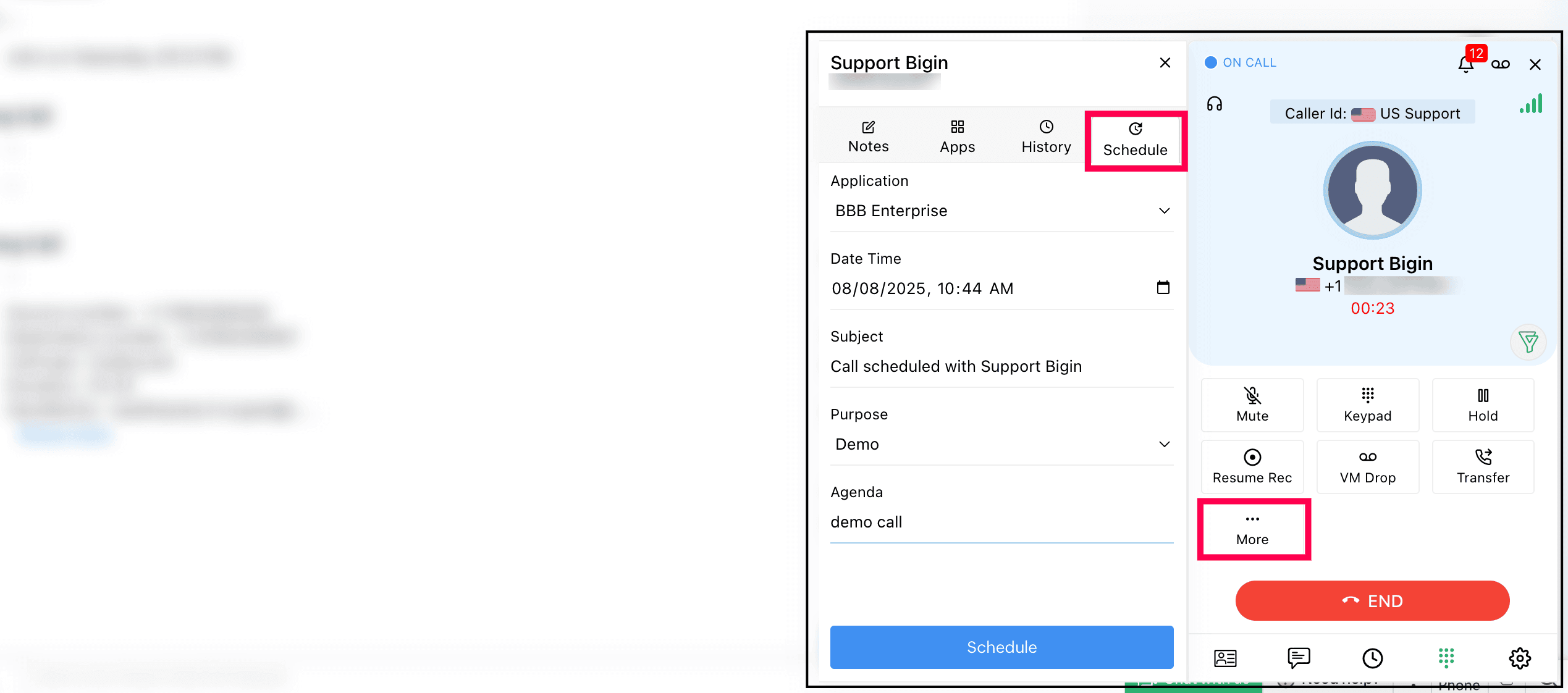 Click More and select Schedule in the ZDialer.