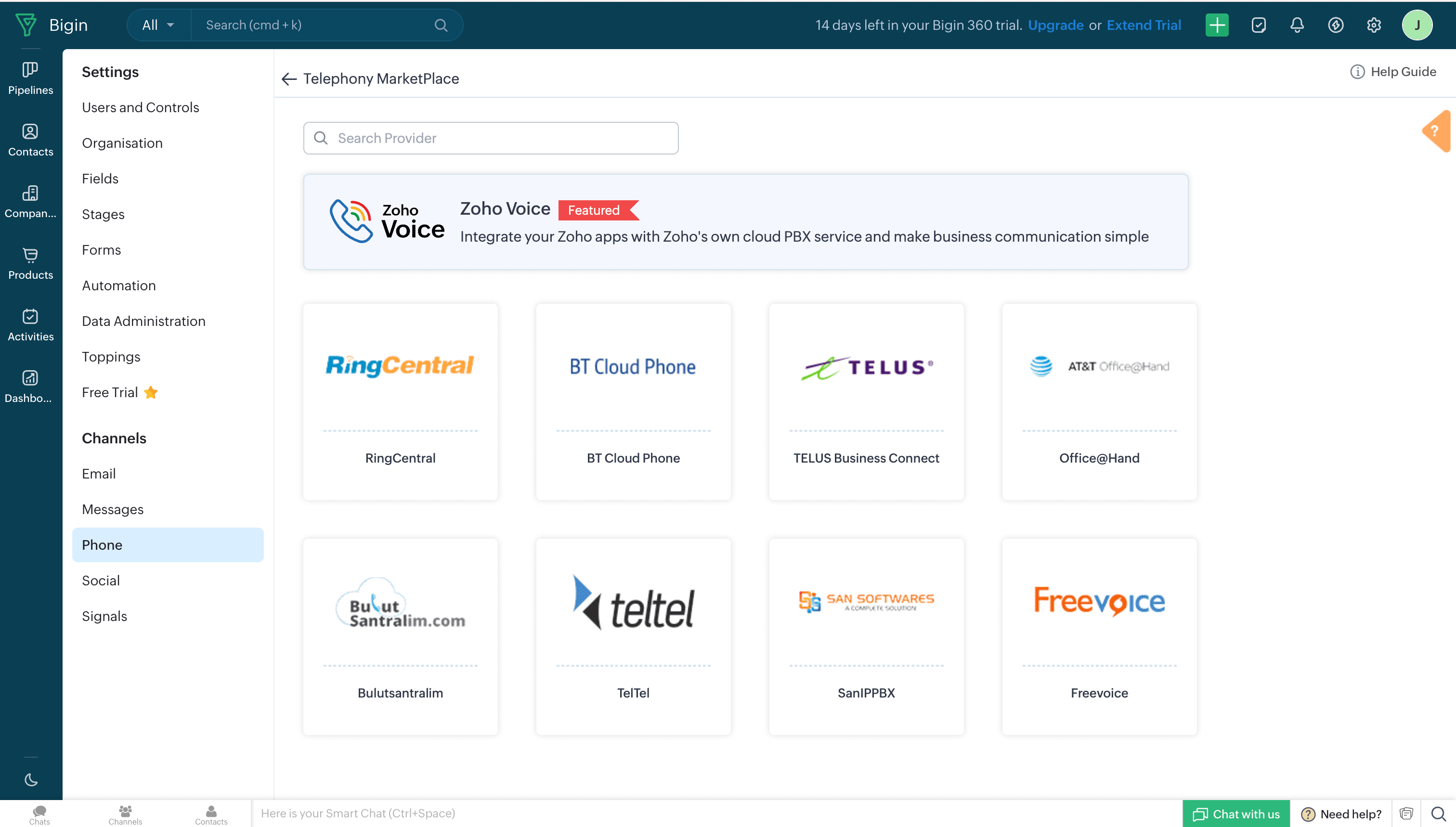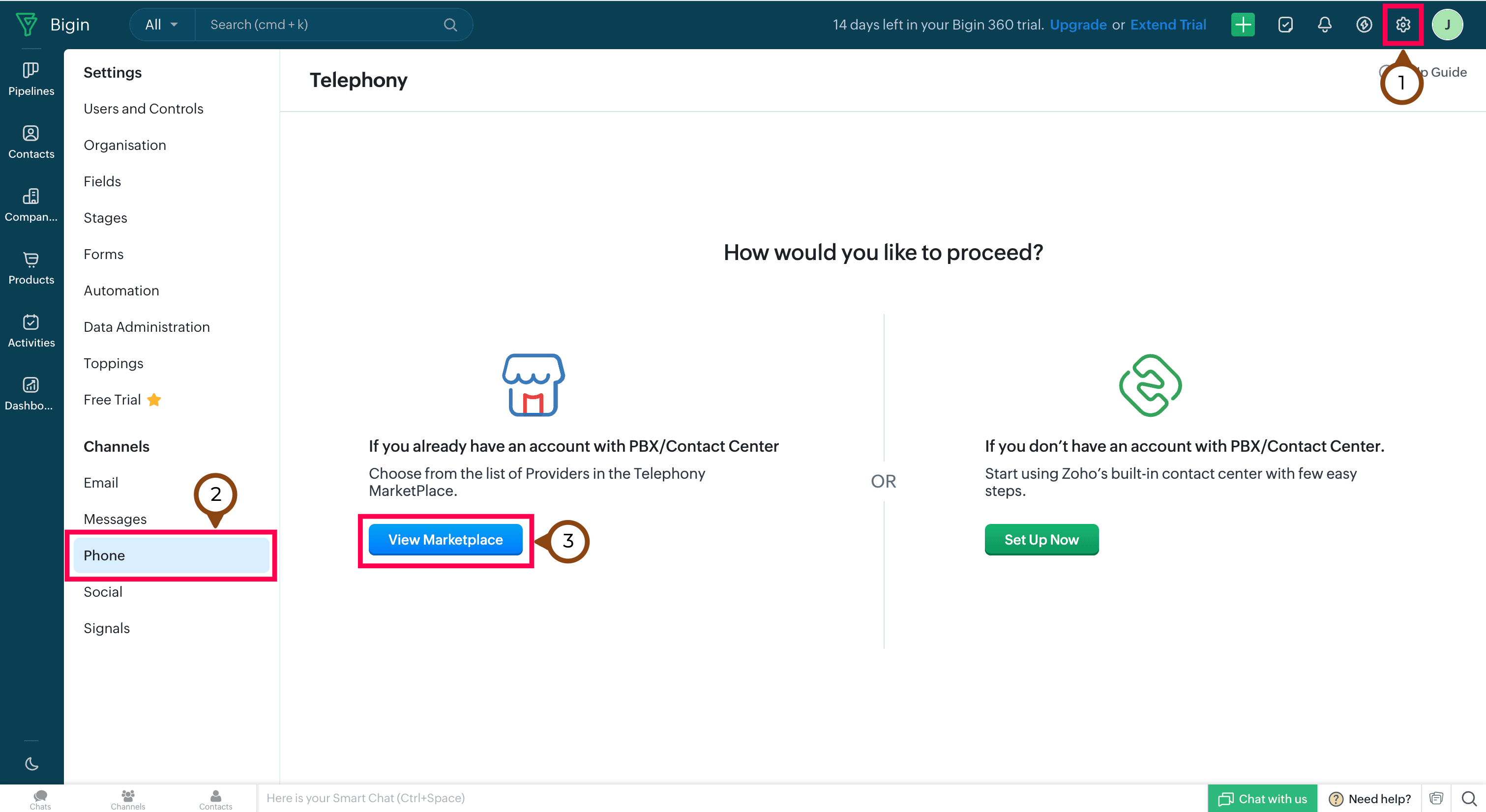 Once you have enabled Telephony(PhoneBridge) in Bigin, you need to follow the below steps in Zoho Voice.