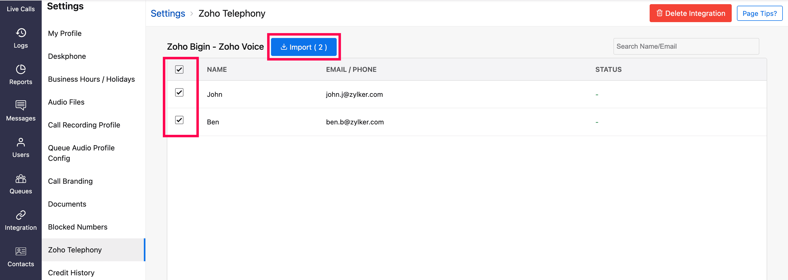 This guide walks you through the steps to configure Zoho Voice in both Zoho Bigin and Zoho Voice, import users, assign roles and numbers, and make the most of the integration's core features.