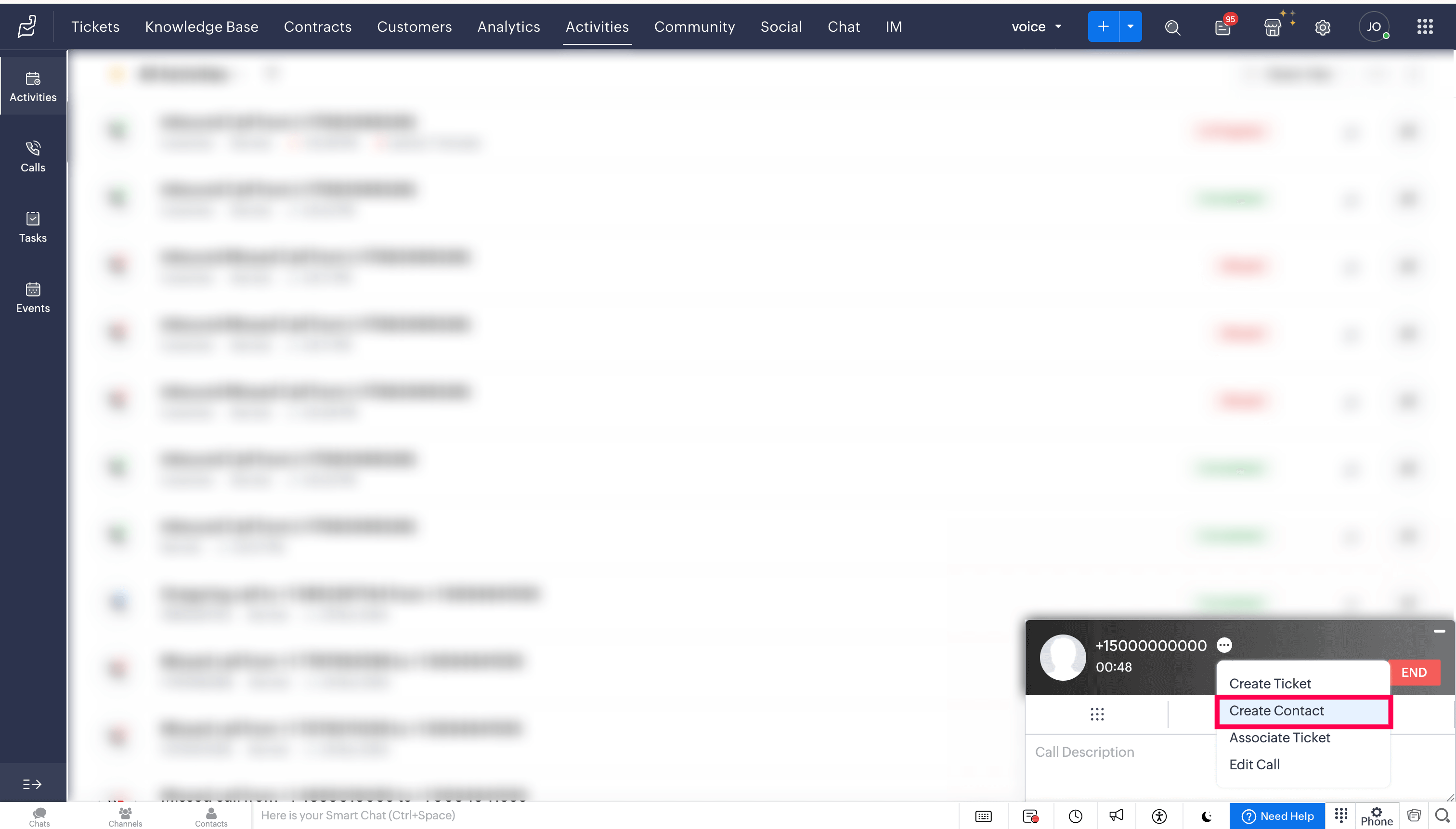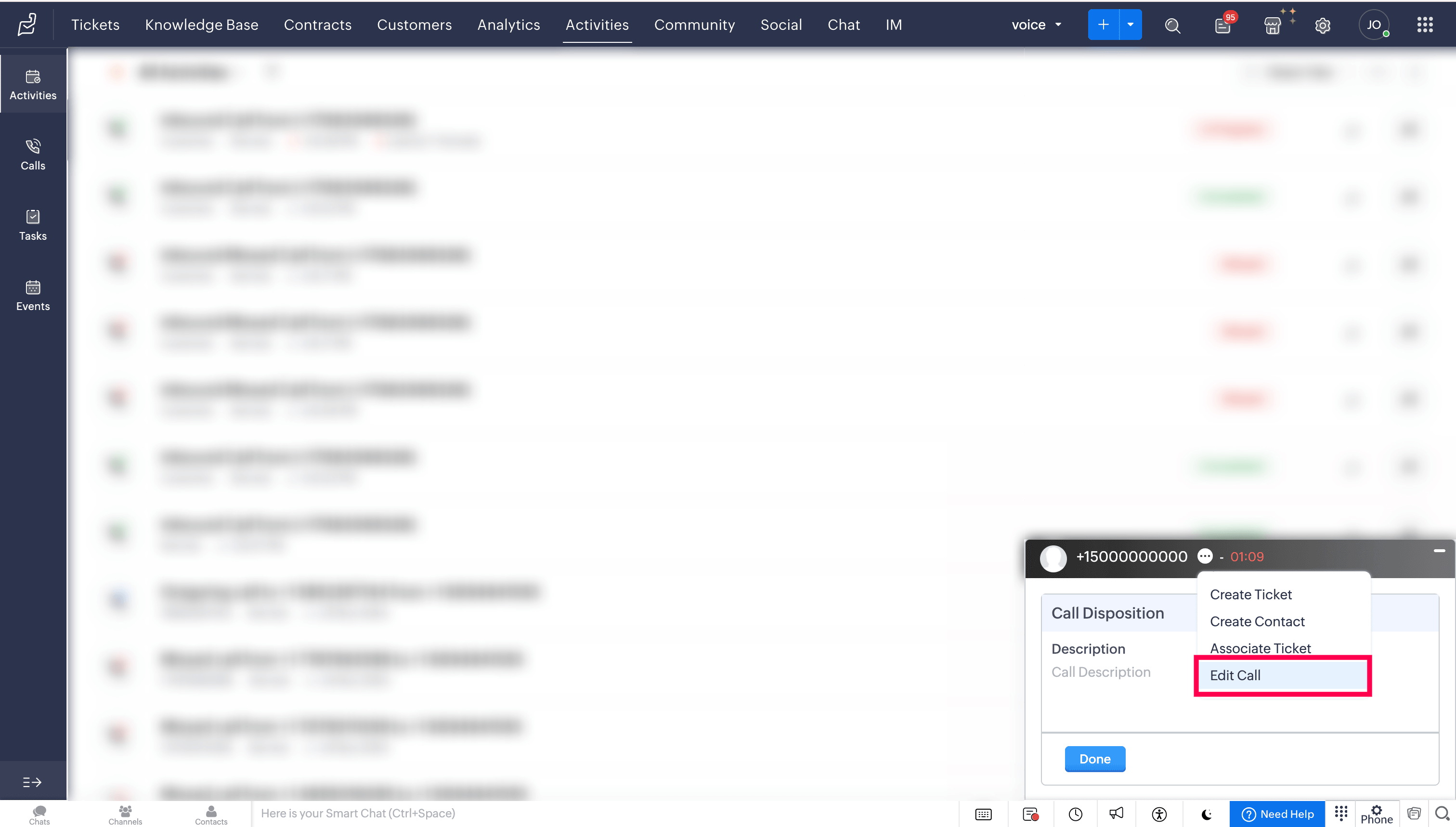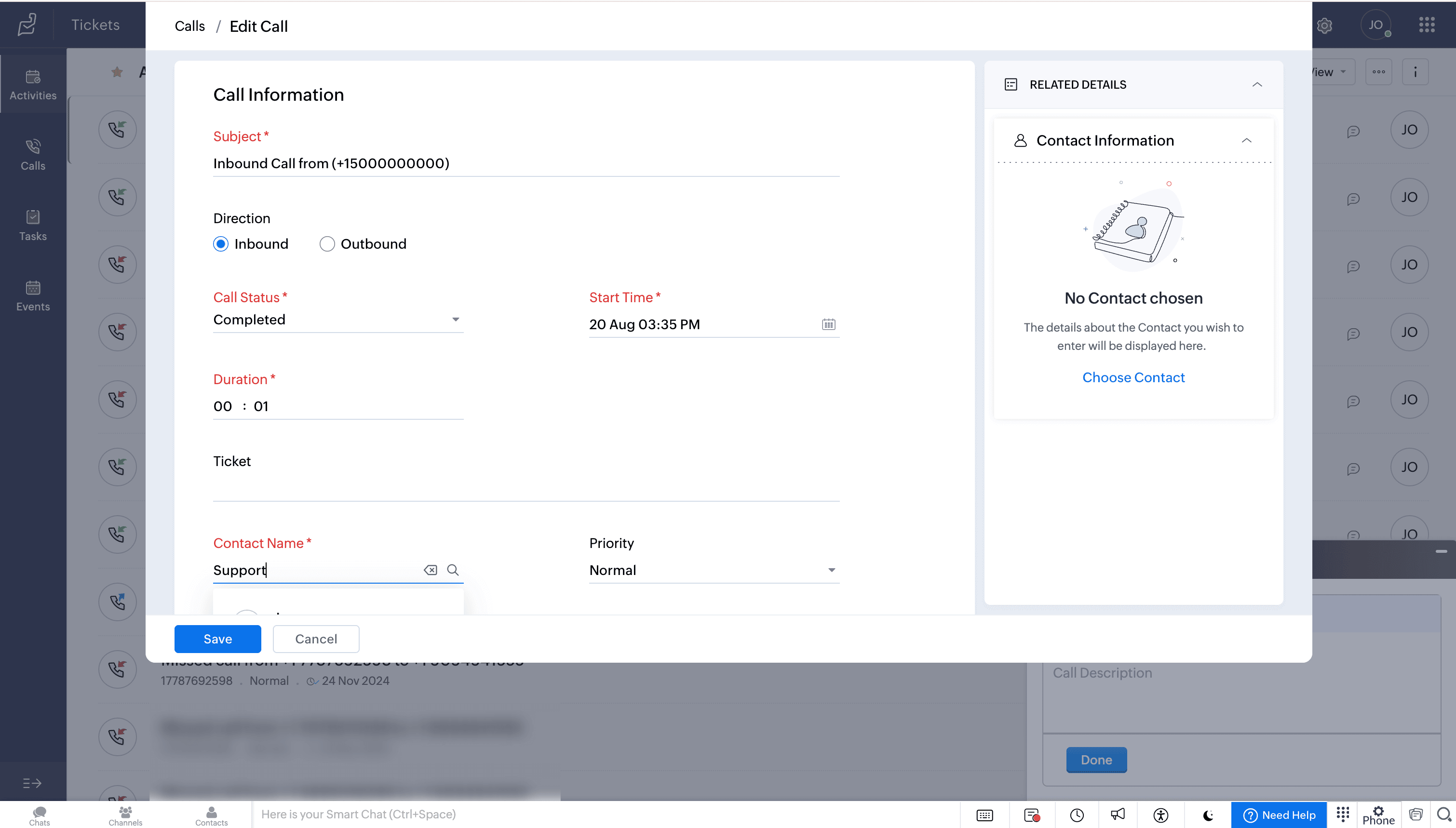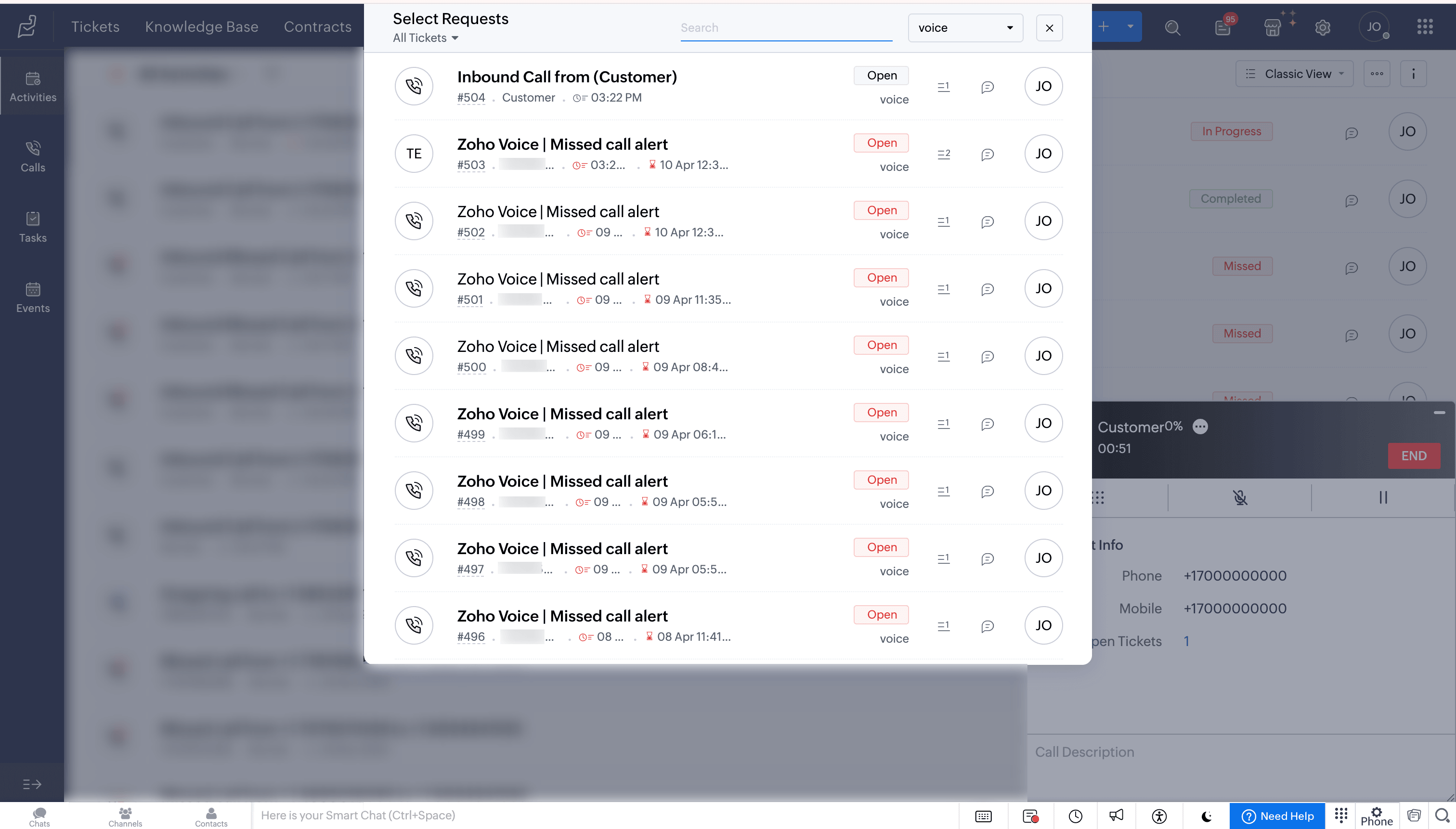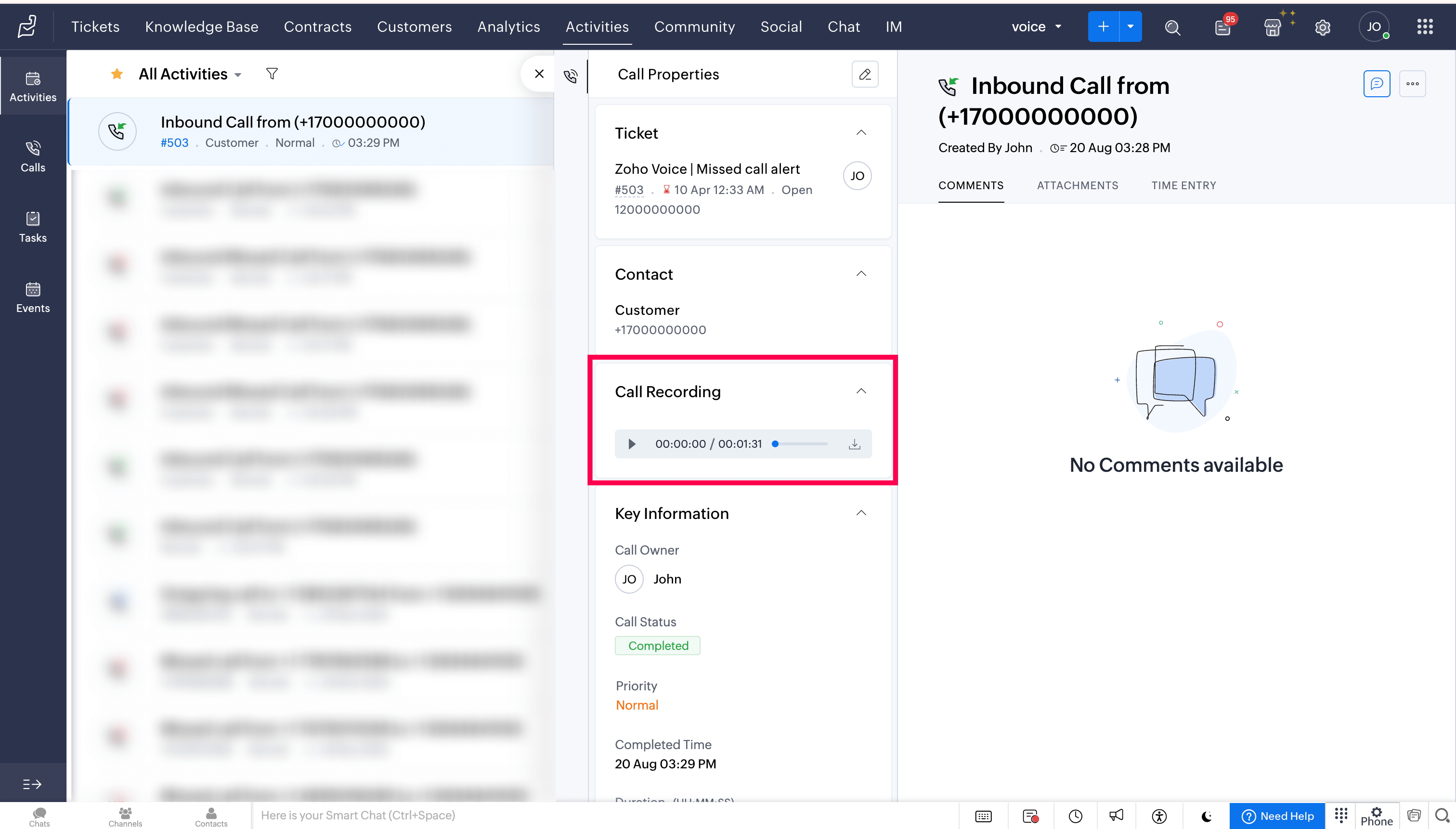 Call logs will be updated automatically under the Activities modules in Zoho Desk.