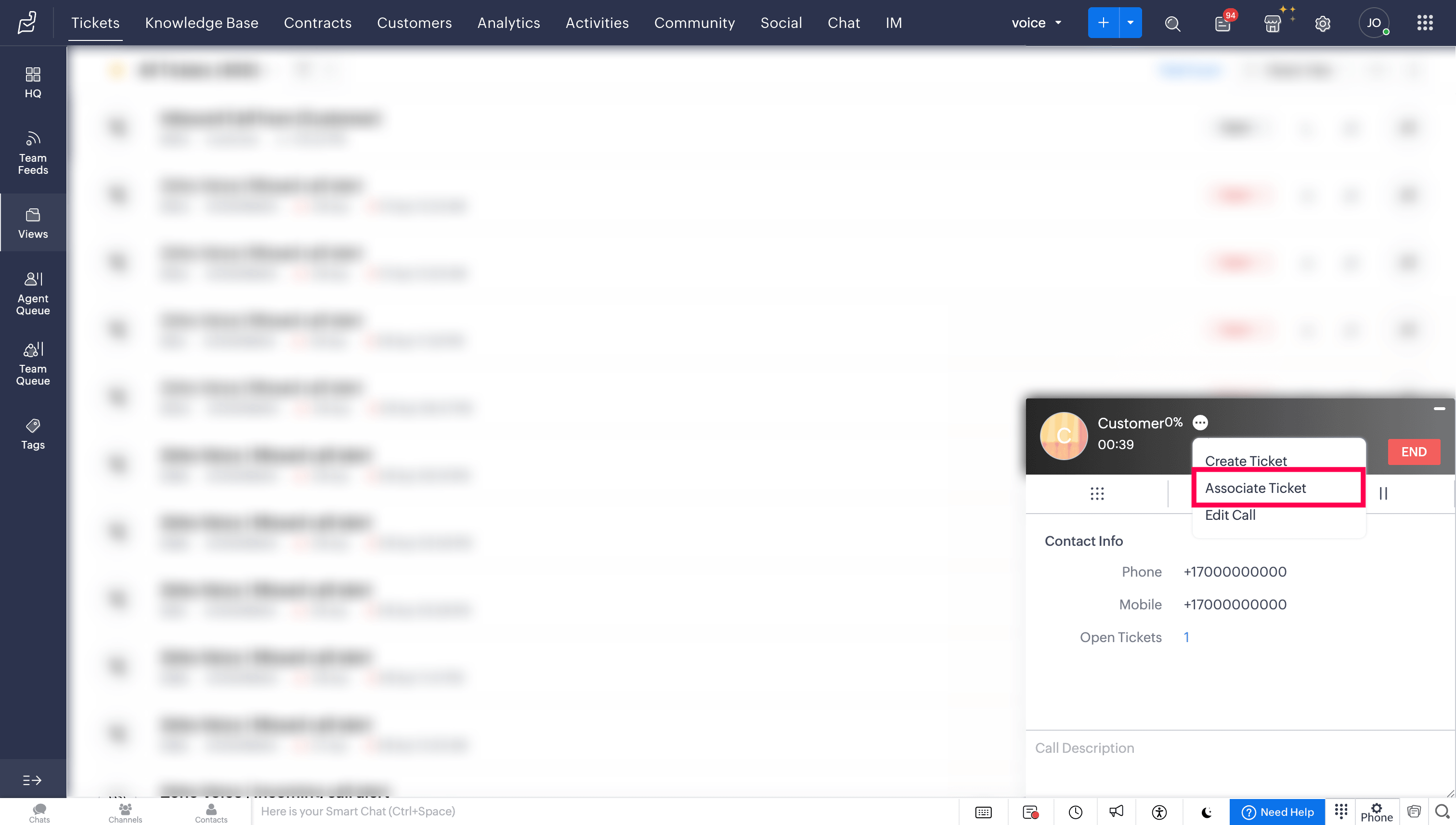 Based on the predefined settings configured during the Zoho Voice - Zoho Desk integration, tickets can be automatically created for specific call events.