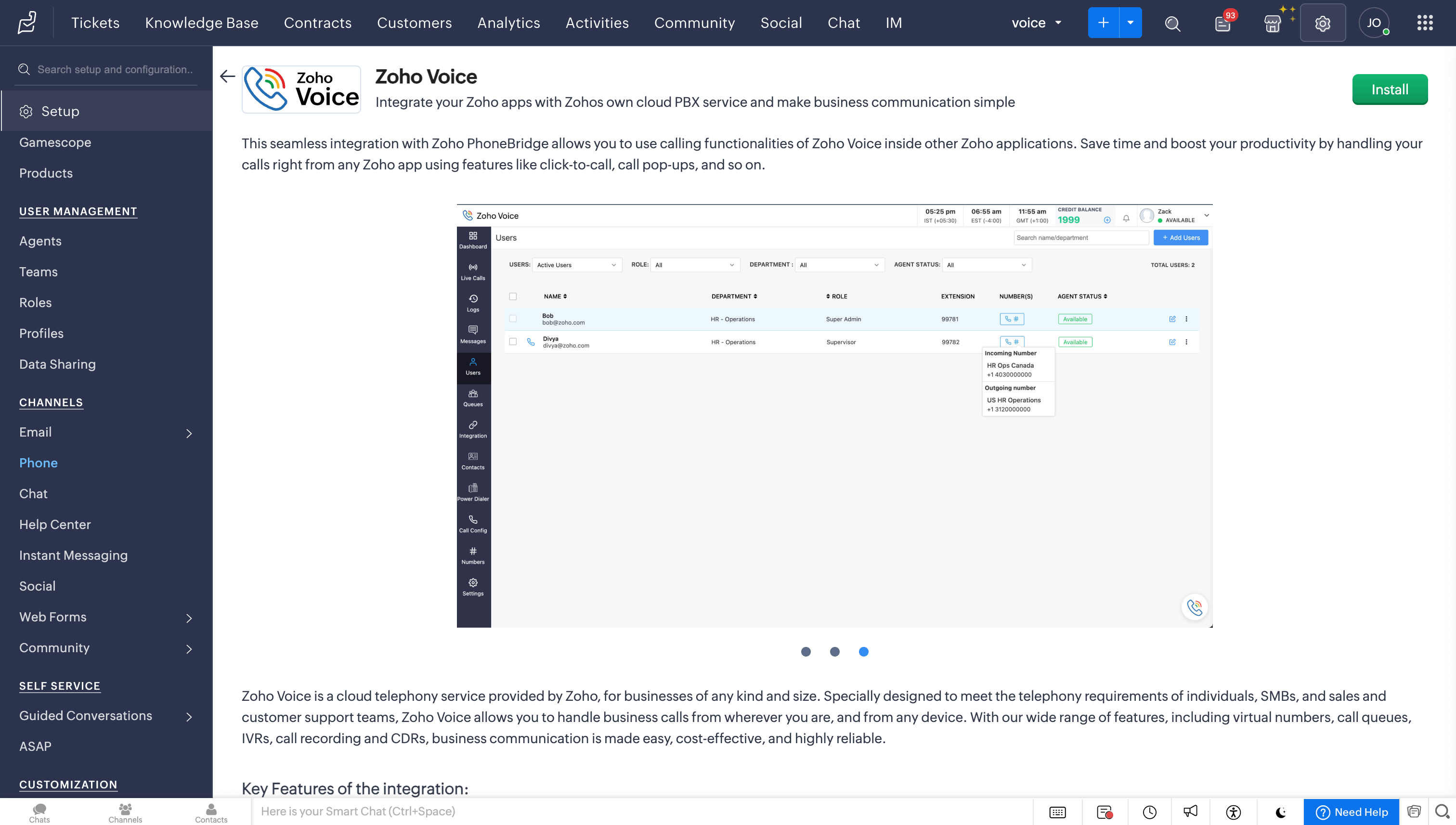 Click Install of Zoho Voice.