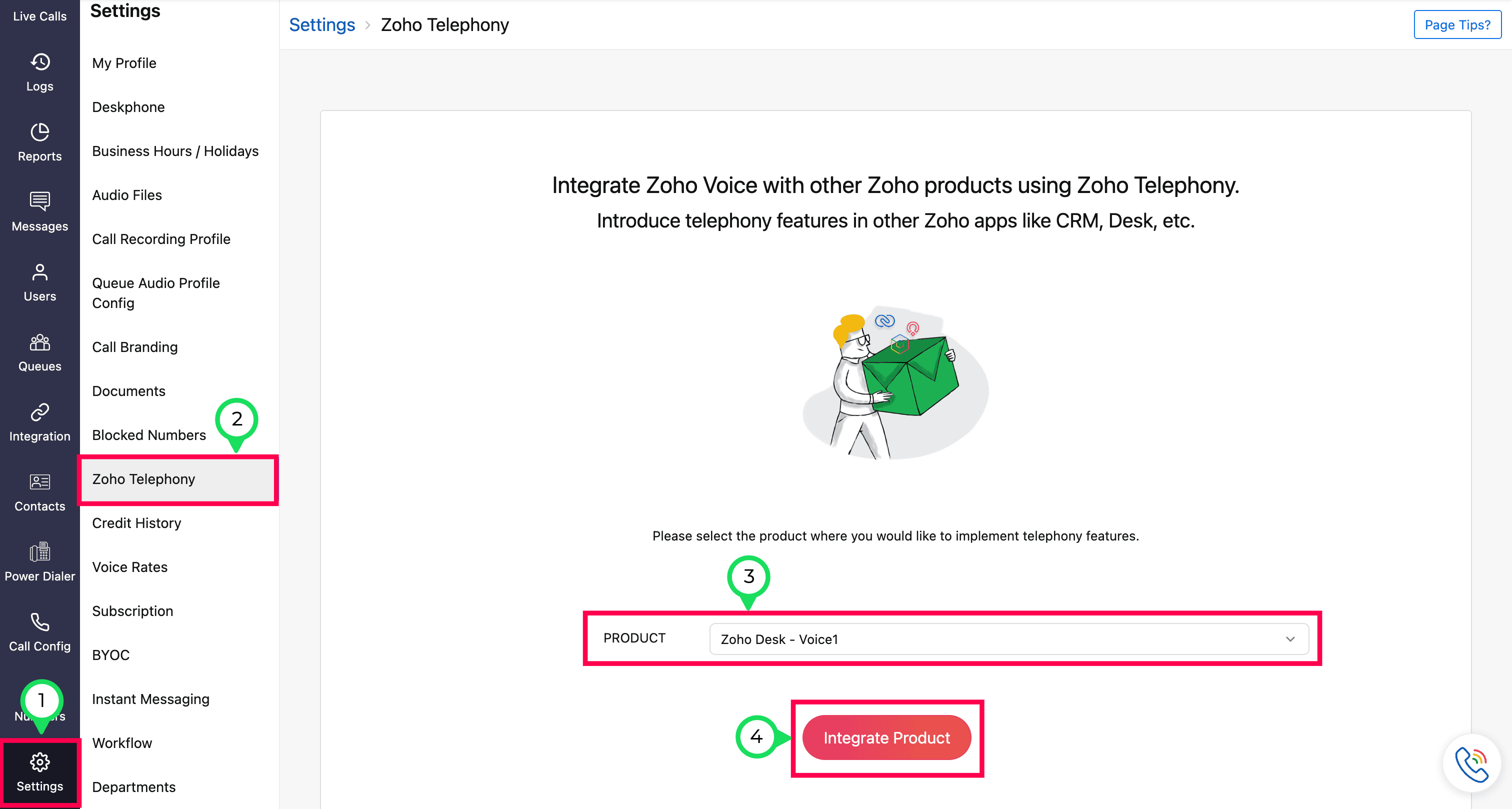 Select the Zoho Desk portal you want to integrate with Zoho Voice and click Integrate Product.