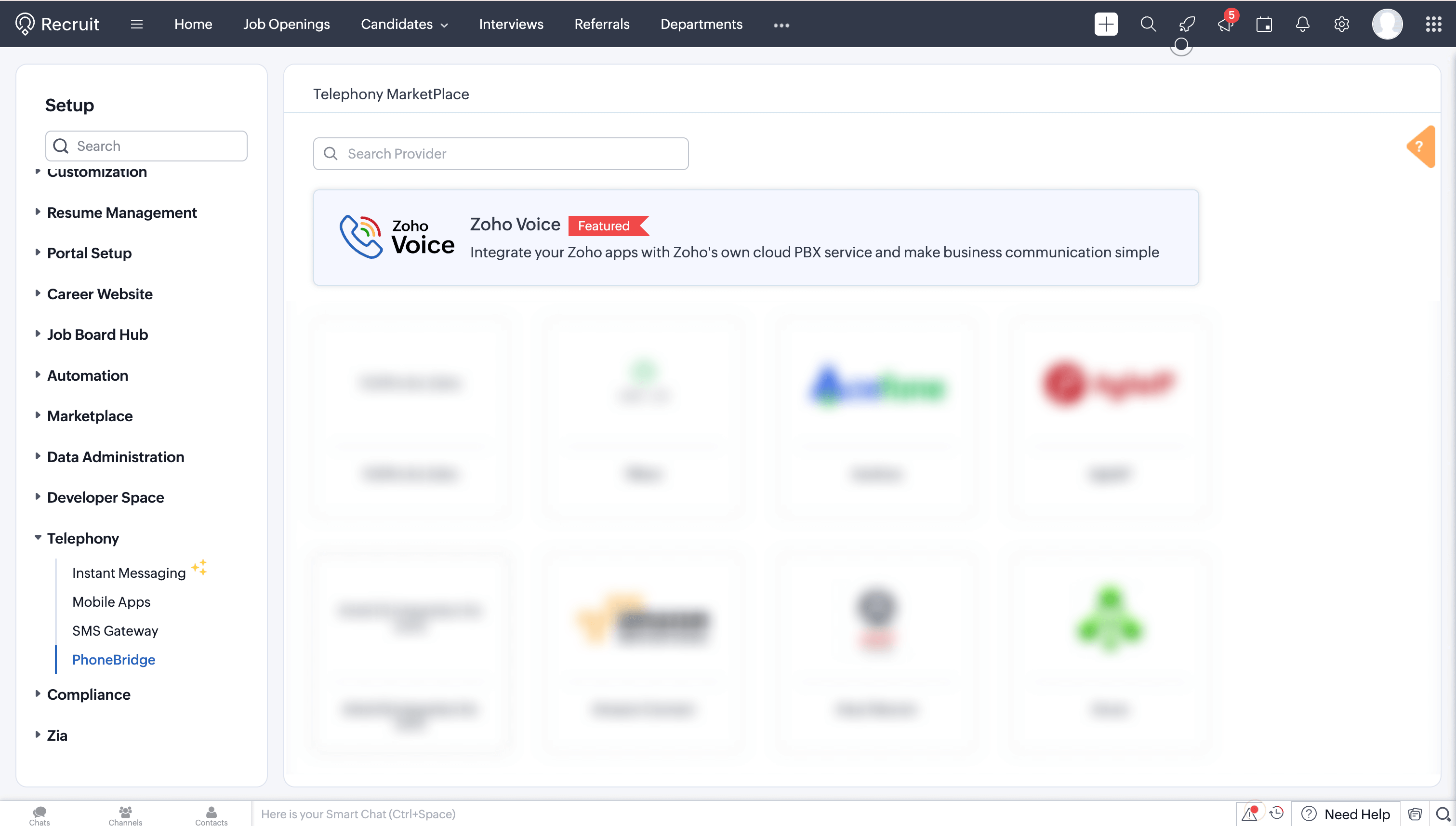 Once you have enabled Telephony (PhoneBridge) in Zoho Recruit, follow the below steps in Zoho Voice.
