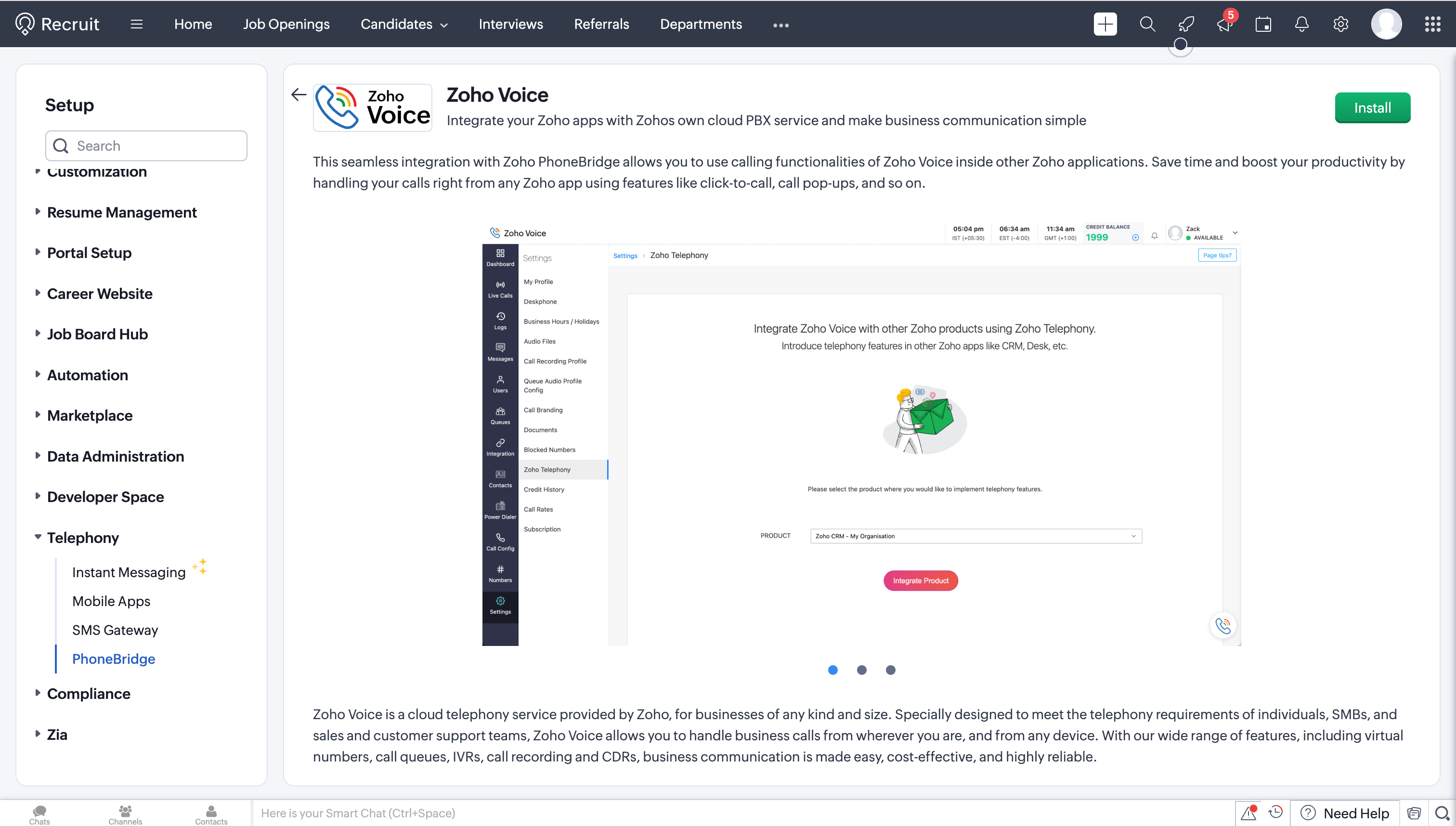 Click Install for Zoho Voice.