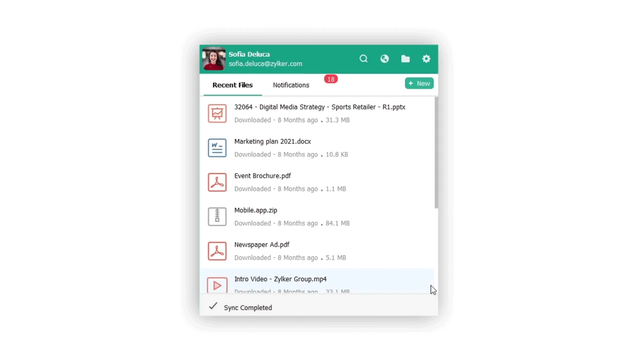 With WorkDrive's TrueSync, you can easily create a virtual drive of your WorkDrive account on your desktop without using up your device's hard drive space. Access your files locally and spend less time managing your storage and more time doing the work that matters.