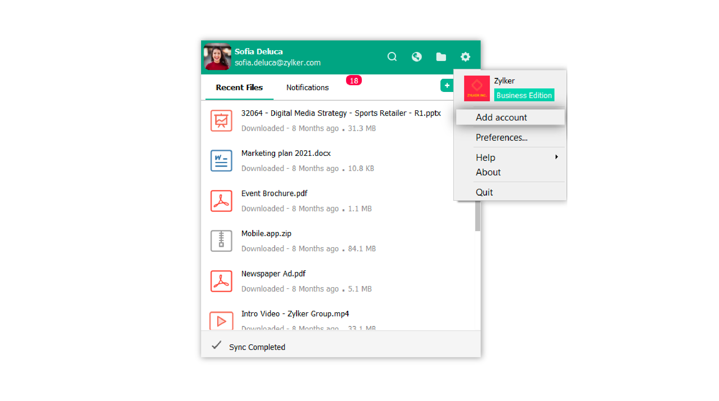 Do you have two or more WorkDrive accounts to sync? Multiple accounts can now be synced to your computer with TrueSync. This is especially useful if you belong to multiple teams while maintaining an individual account. You may now sync all your accounts to your PC.