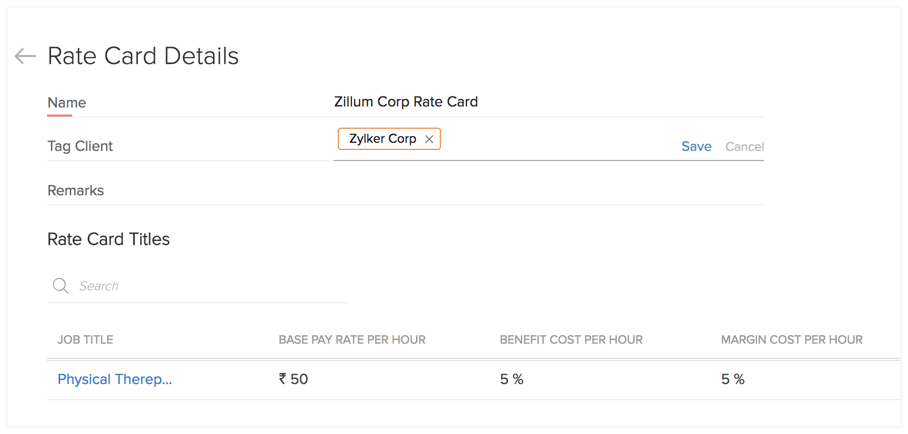 Your clients may define various rates for different jobs. Based on your client requirements, you can define unique rate cards or clone your existing rate cards and tag your clients to that. to help you follow the company specific billing model.