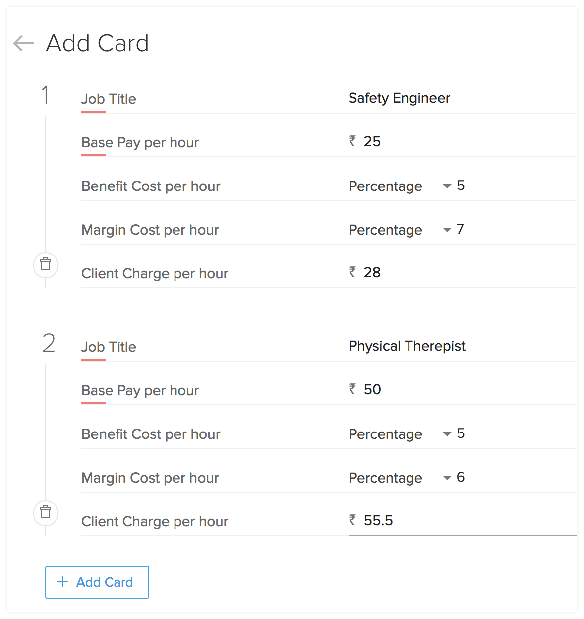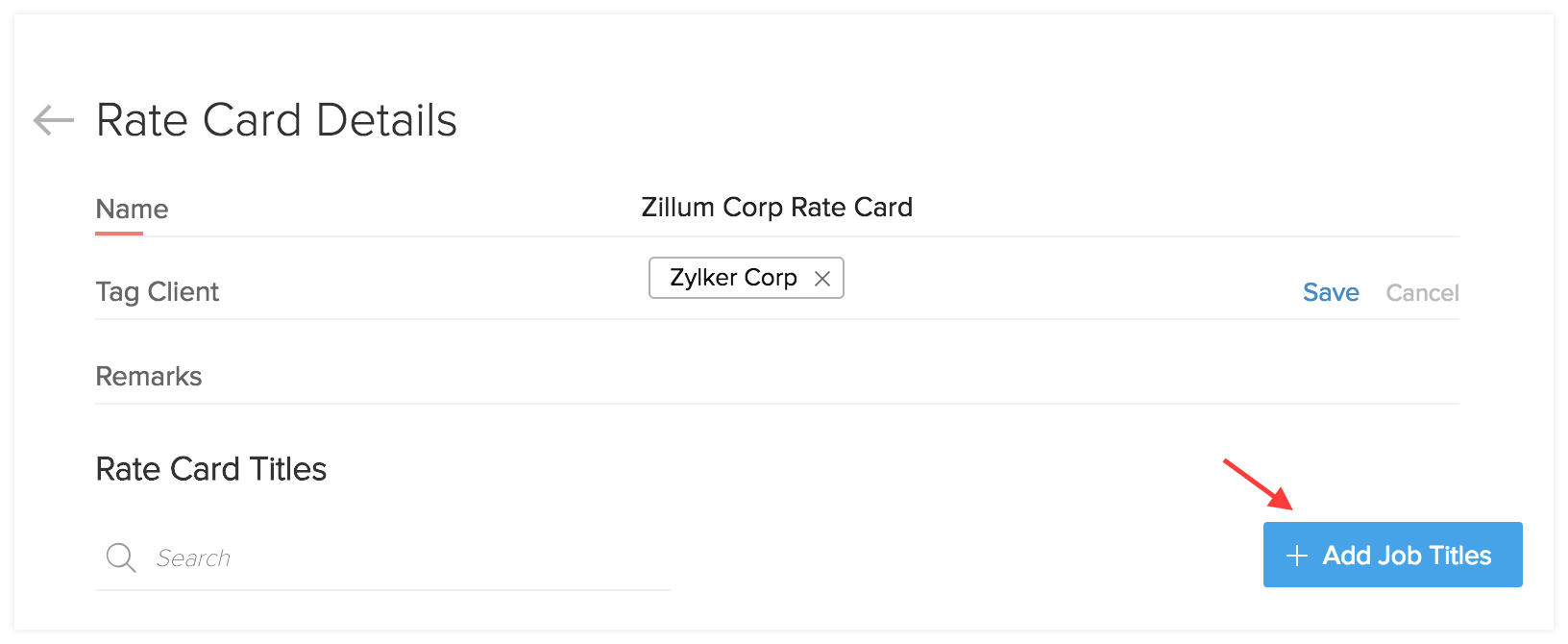 - You can now add your job titles along with the rate card information in the Details page.