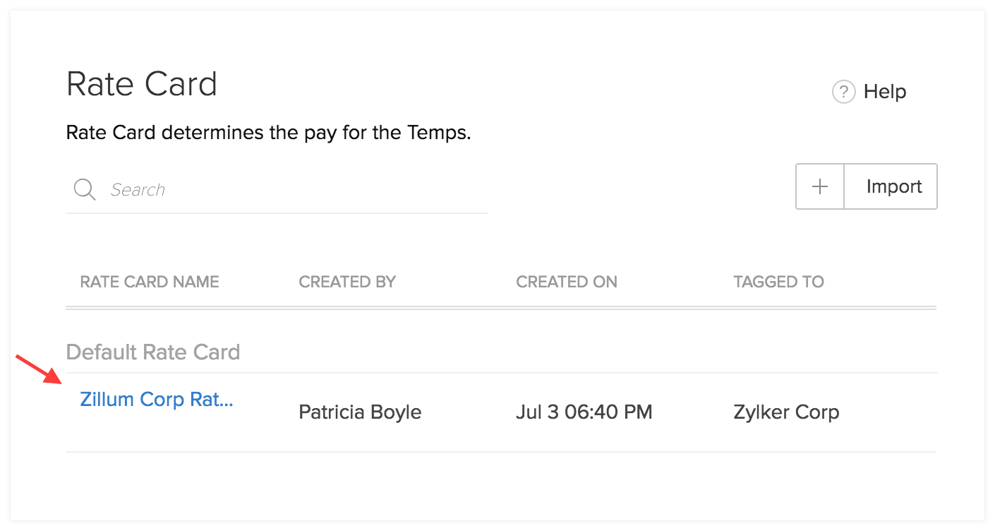 Whenever you create a new Tempstaffing account, a default rate card will be created for your organization. The format of the default ratecard will be <Company Name> RateCard. Your account administrator will be able to set rate details for various job openings. You can also tag your clients who have fixed similar rates for various job positions.