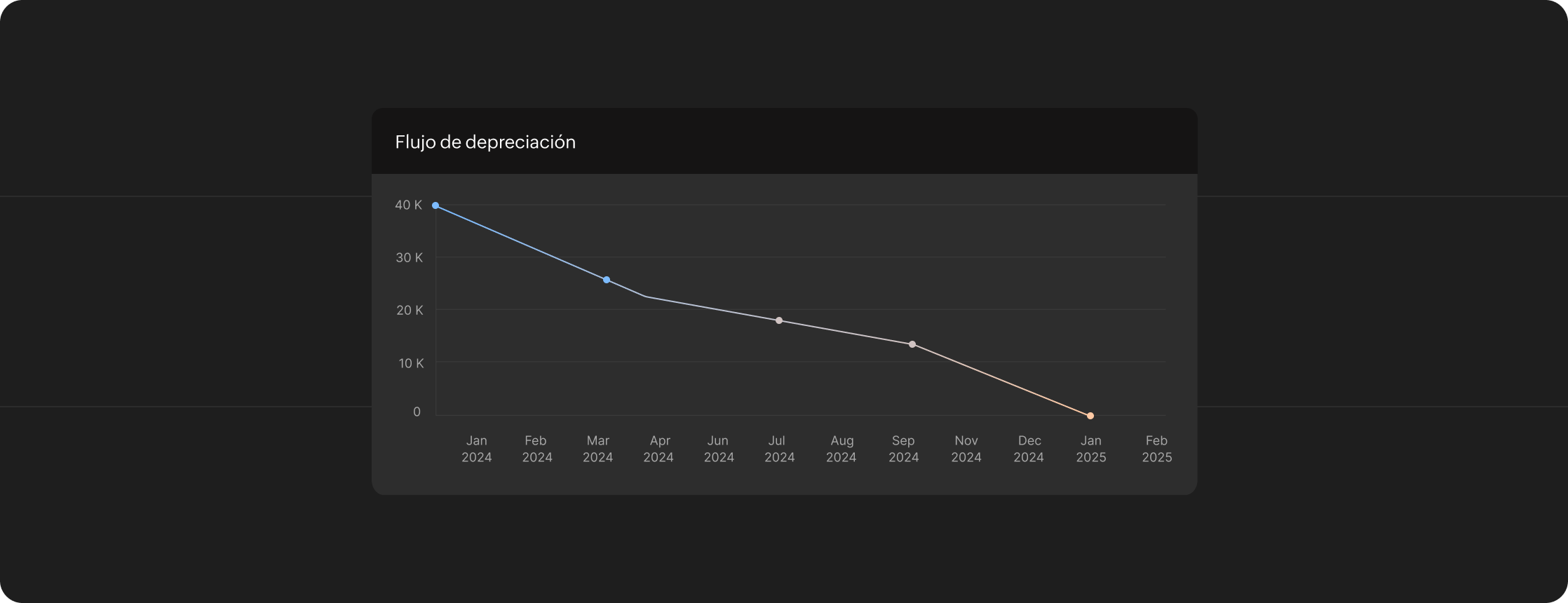 Visualiza las tendencias de depreciación de activos a lo largo del tiempo con gráficos intuitivos.