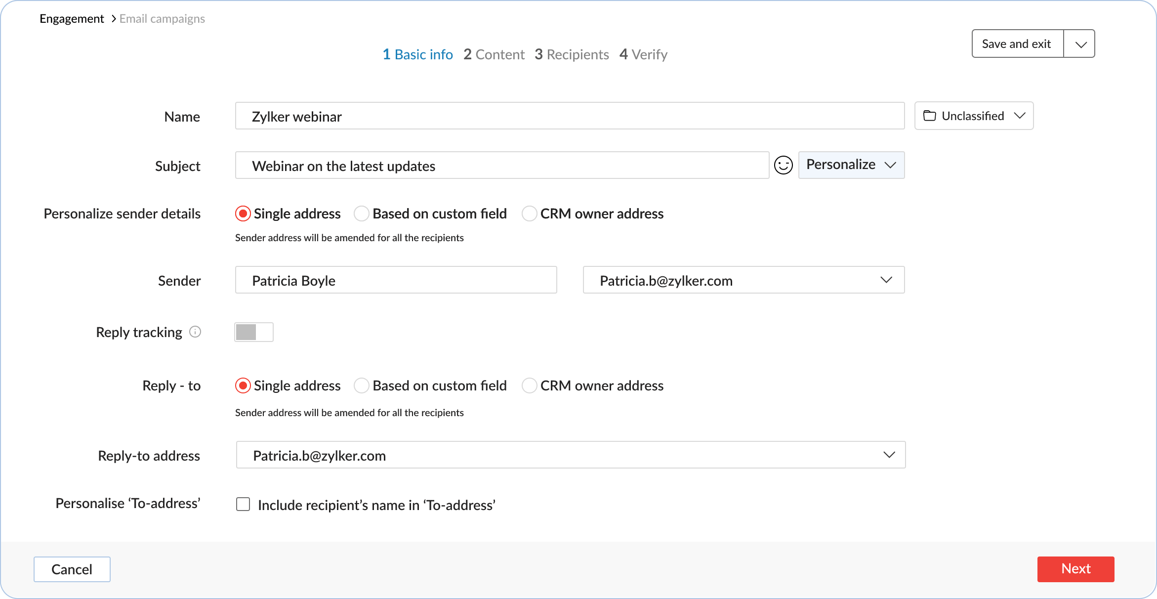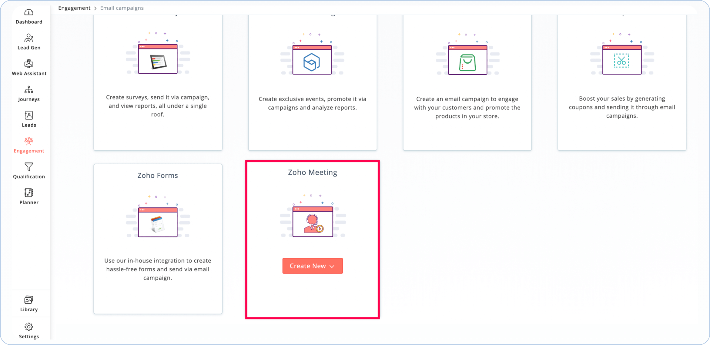 Sync webinar registrants and attendees lists to Zoho Marketing Automation. With webinar-based email campaigns, you can keep your registrants updated about their upcoming webinars. You can also send details of upcoming webinars to previous webinar attendees who have shown interest in attending more.