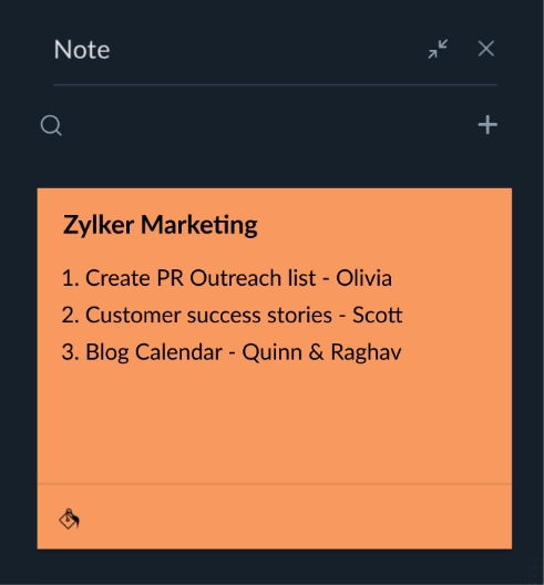 Send ideas and thoughts to your peers and colleagues within Cliq without having to switch tabs. You can also privately share a note card with your friends or product group with a few clicks.