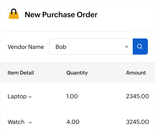 Create purchase orders in minutes, stay on top of your order history and turn them into bills effortlessly using Zoho Books.