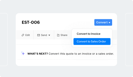 Once a quote is approved, turn it into an invoice or sales order—no need to re-enter the details. This reduces manual errors and accelerates your invoicing process.